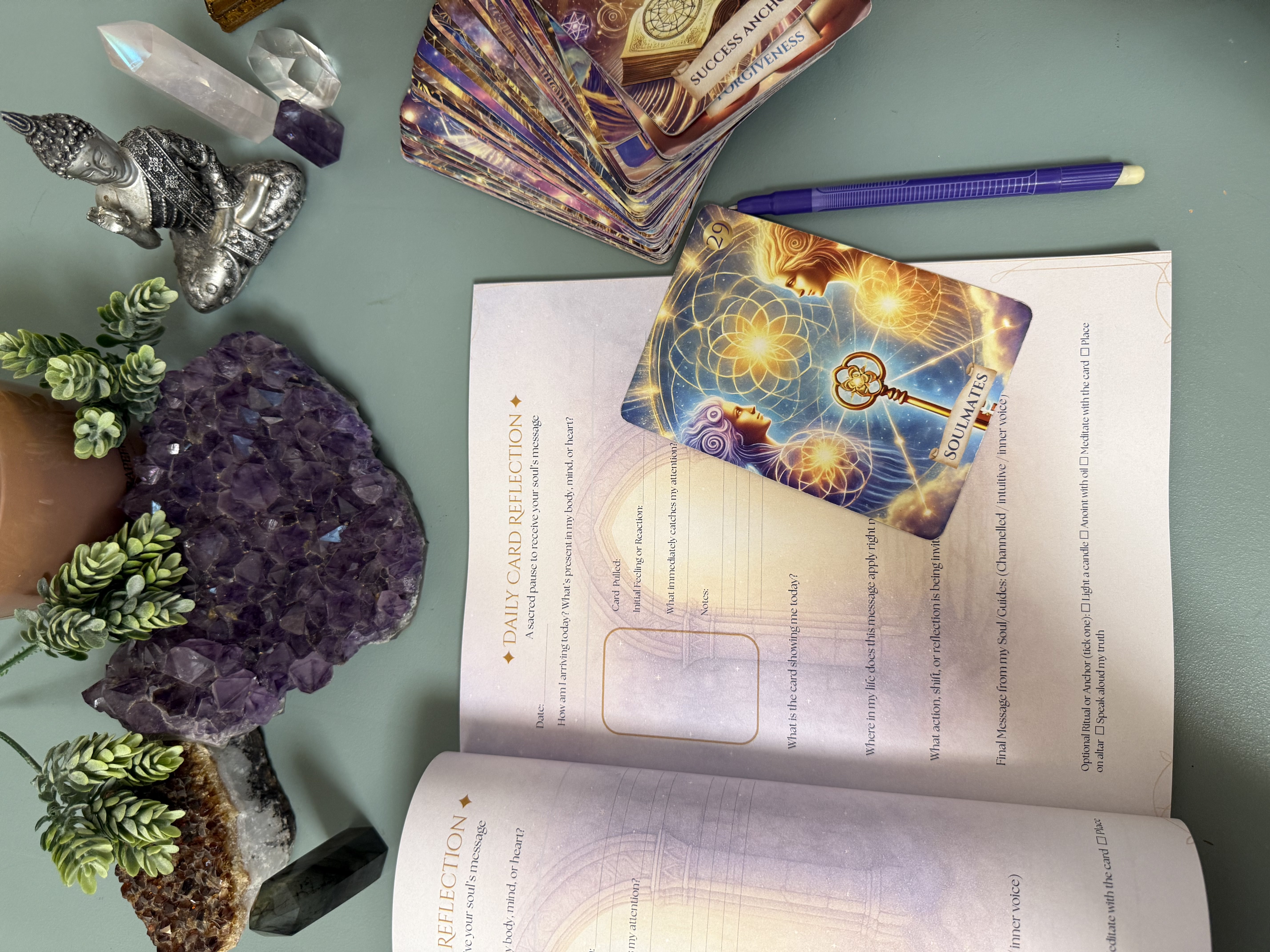 It’s designed to be a sacred companion to the deck — giving you space to:
